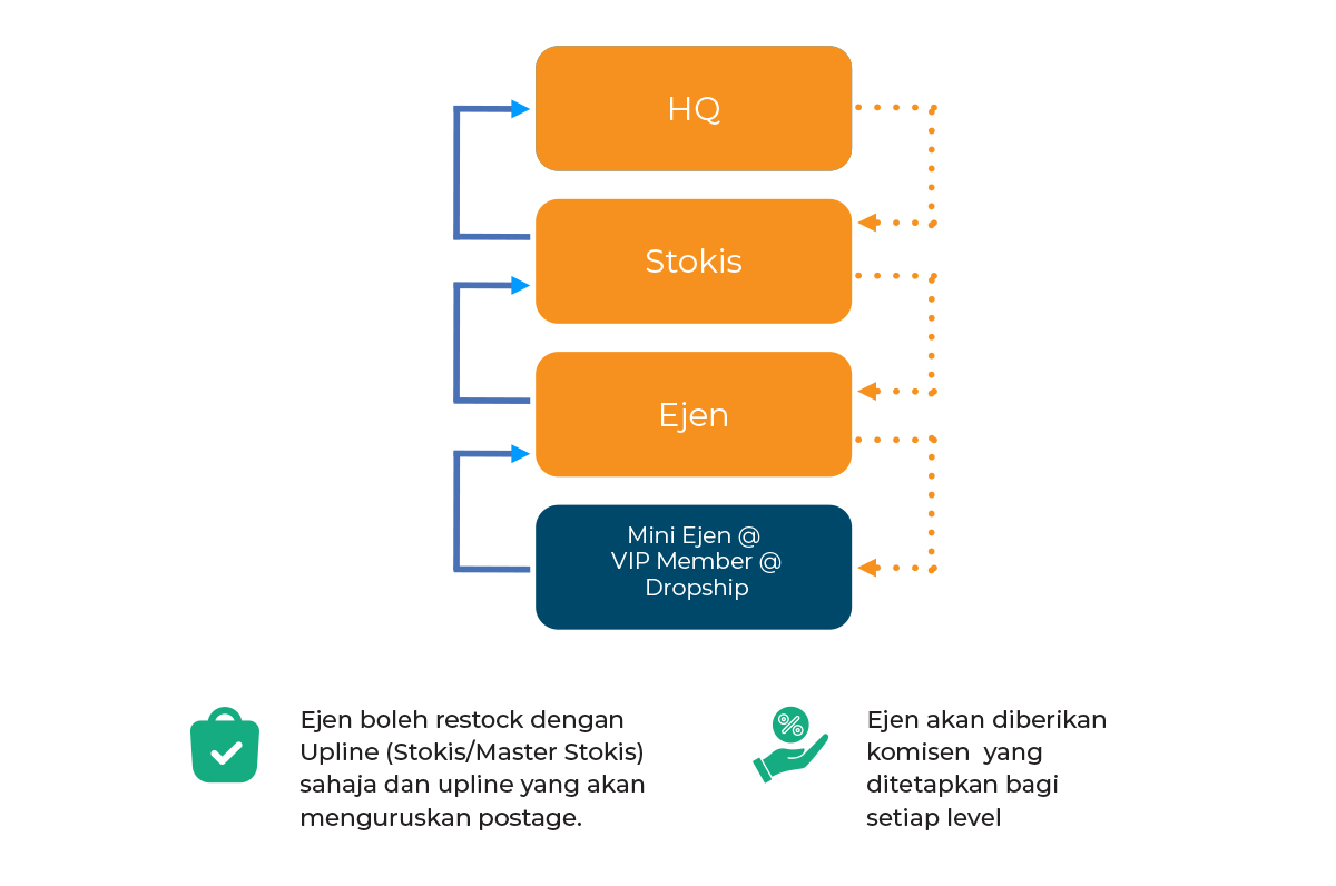 Fungsi sistem yang komprehensif dibina khas untuk bantu HQ mudahkan operasi bisnes sistem ejen dan stokis.